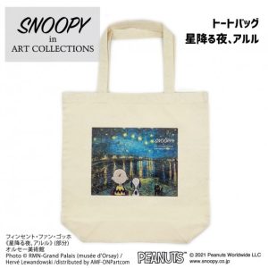 PEANUTSと縁のある、フィンセント・ファン・ゴッホの絵画とのコラボレーショングッズです。ランチトートです。